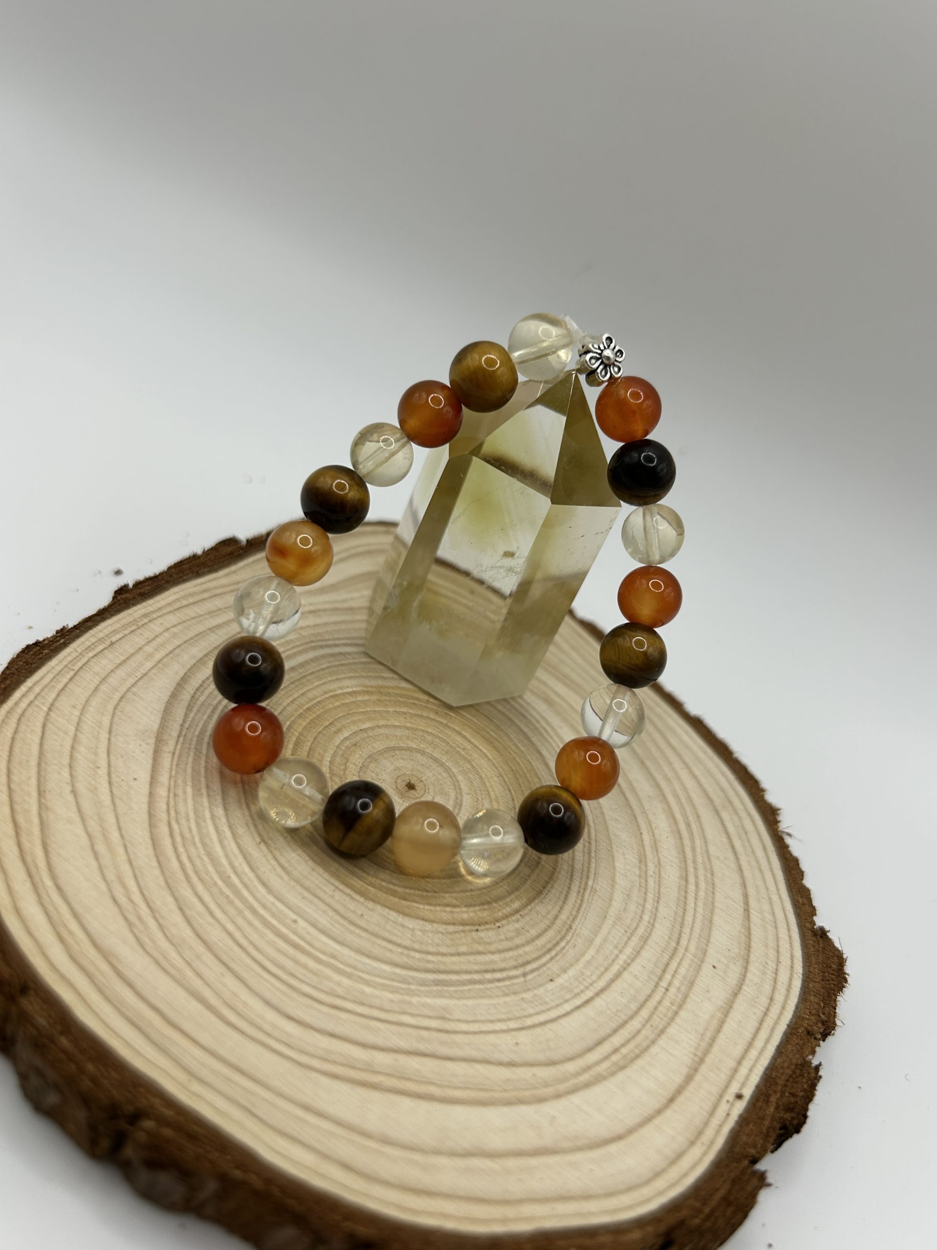 Retrouvez force, motivation et rayonnement intérieur avec ce bracelet Estime de soi & Affirmation, conçu pour soutenir votre confiance, libérer votre potentiel et renforcer votre affirmation personnelle. L’alliance de la citrine, de l’œil de tigreet de la cornaline agit en douceur pour stimuler la vitalité, l’assurance et l’expression de soi.