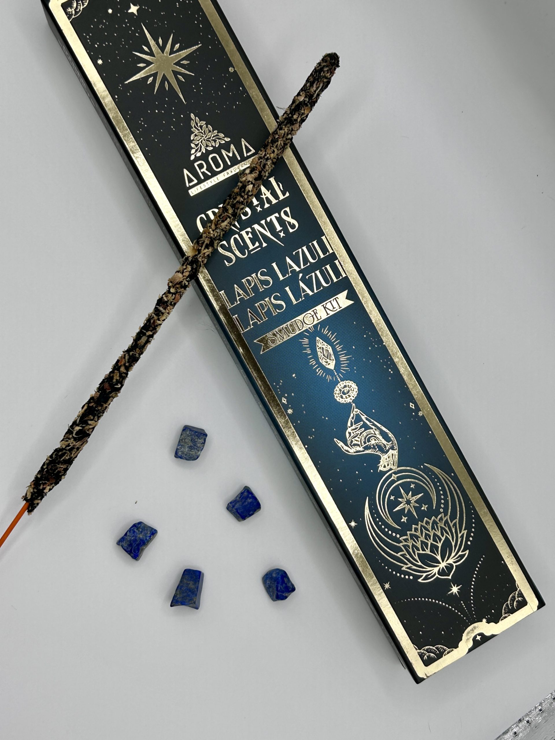 Purifiez votre espace et éveillez votre intuition avec l’encens Lapis Lazuli AROMA. Enrichi de fragments de Lapis Lazuli, il instaure calme intérieur, clarté mentale et atmosphère sereine. Idéal pour la méditation, la relaxation et les rituels de recentrage.