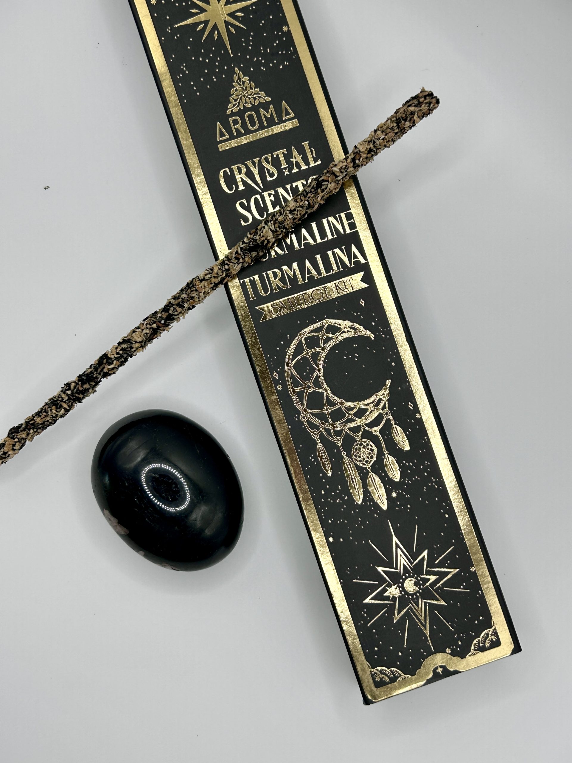 Son parfum subtil et équilibré stimule la concentration, diminue le stress et crée une atmosphère propice à la méditation, aux rituels spirituels ou simplement à la détente. La tourmaline agit comme un bouclier énergétique, repoussant les énergies négatives et renforçant votre vitalité.