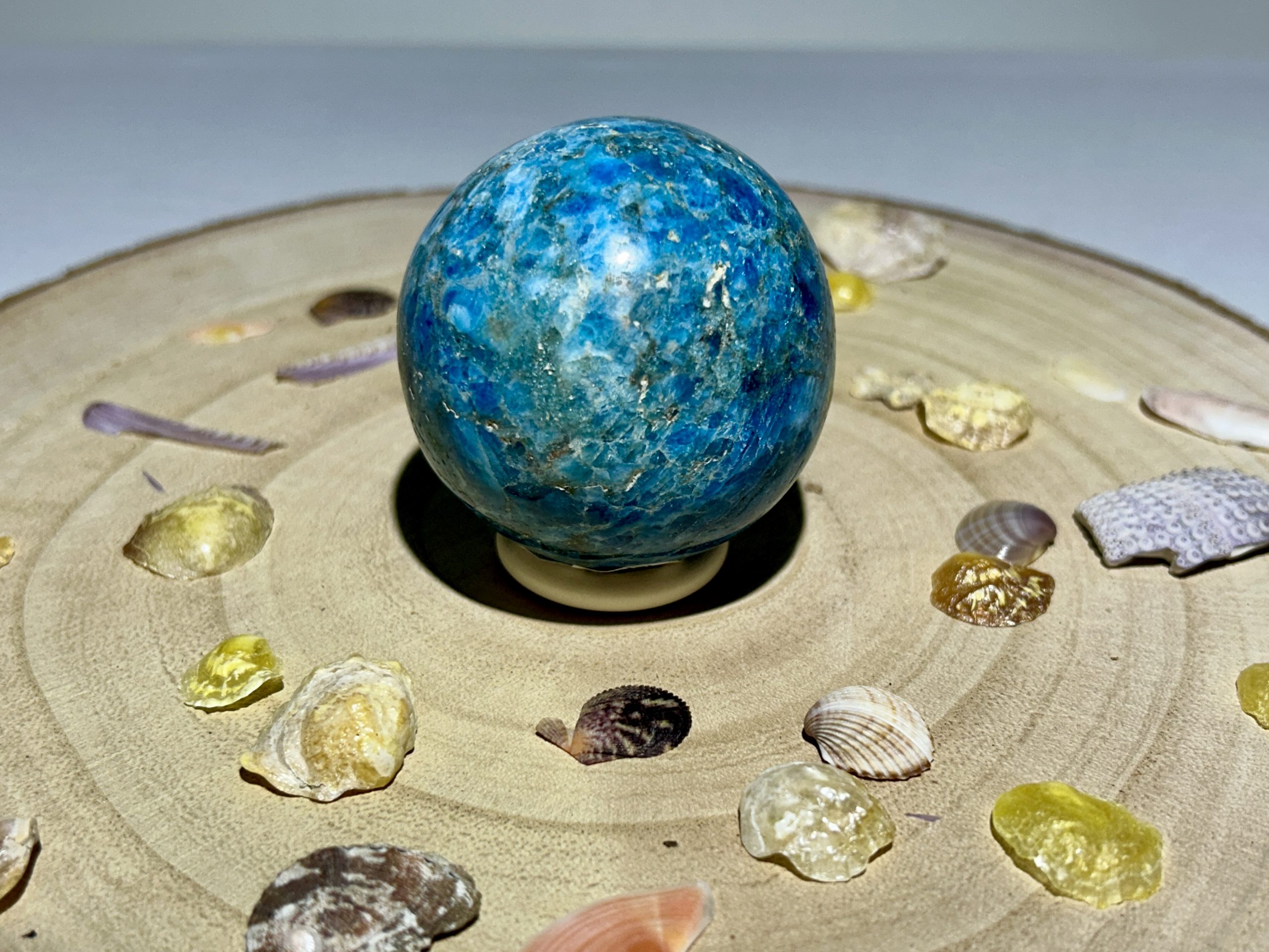 L’Apatite favorise la méditation profonde. Elle stimule l’intuition et l’accès à la connaissance intérieure et débloque les énergies au niveau des chakras supérieurs. Elle est souvent utilisée pour entrer en contact avec les plans supérieurs et les vies antérieures.