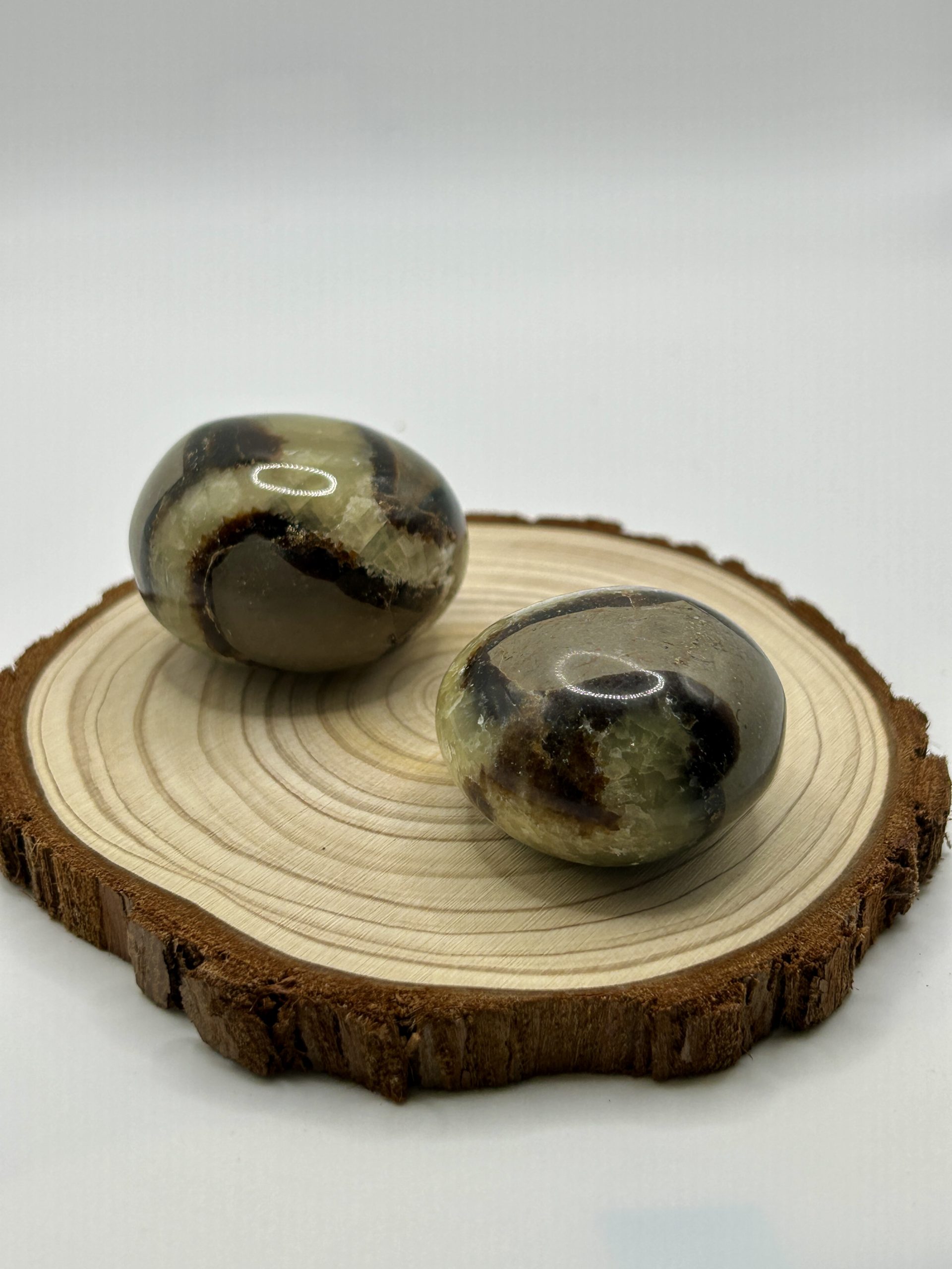 La Septaria est une pierre fascinante composée d’un mélange de calcite, d’aragonite et de calcaire, formant des motifs naturels en craquelures. Elle est aussi appelée « pierre du dragon » pour son apparence unique.