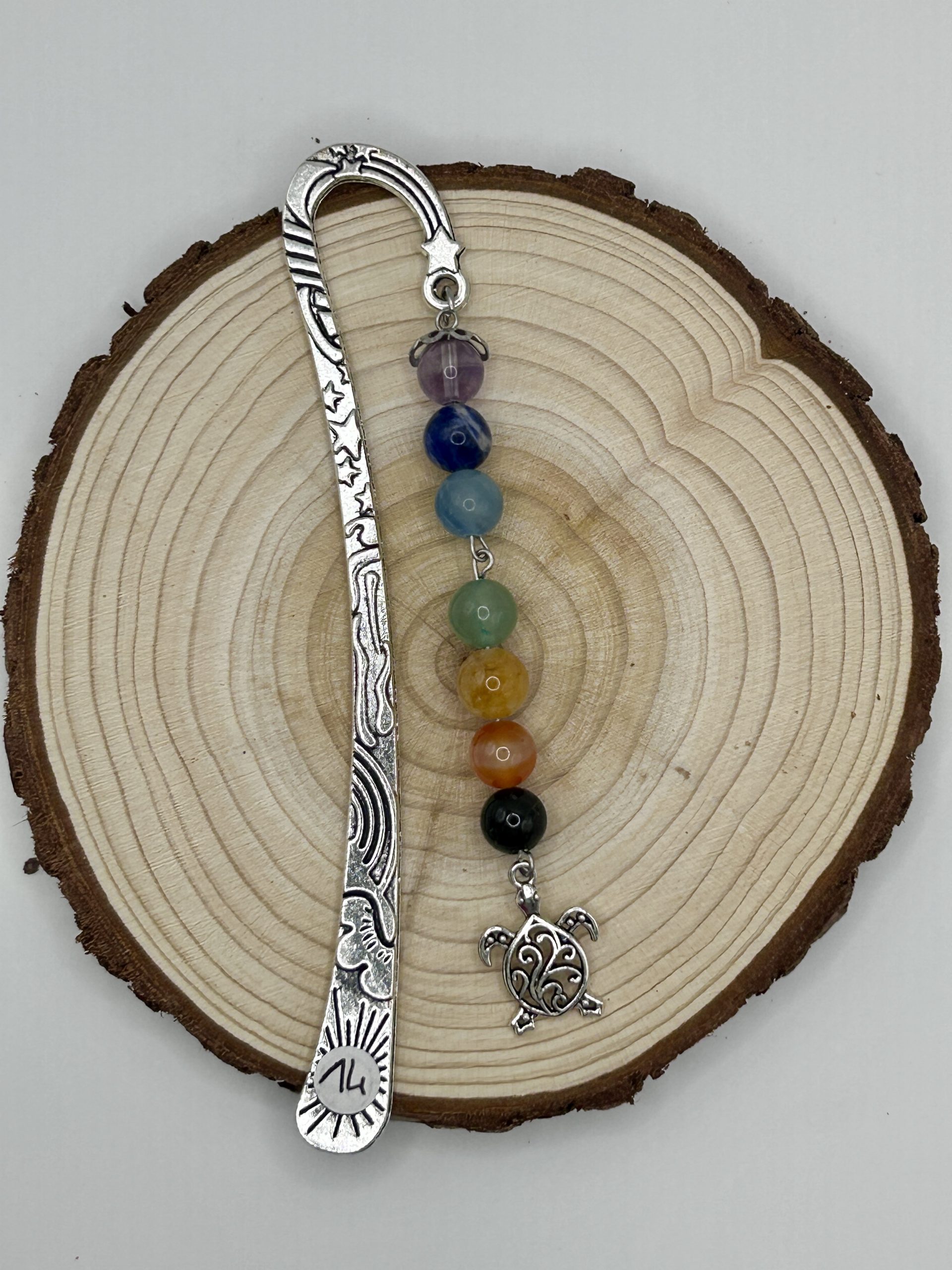 Marque-page céleste en pierres naturelles avec pendentif tortue, une création apaisante inspirée des 7 chakras.