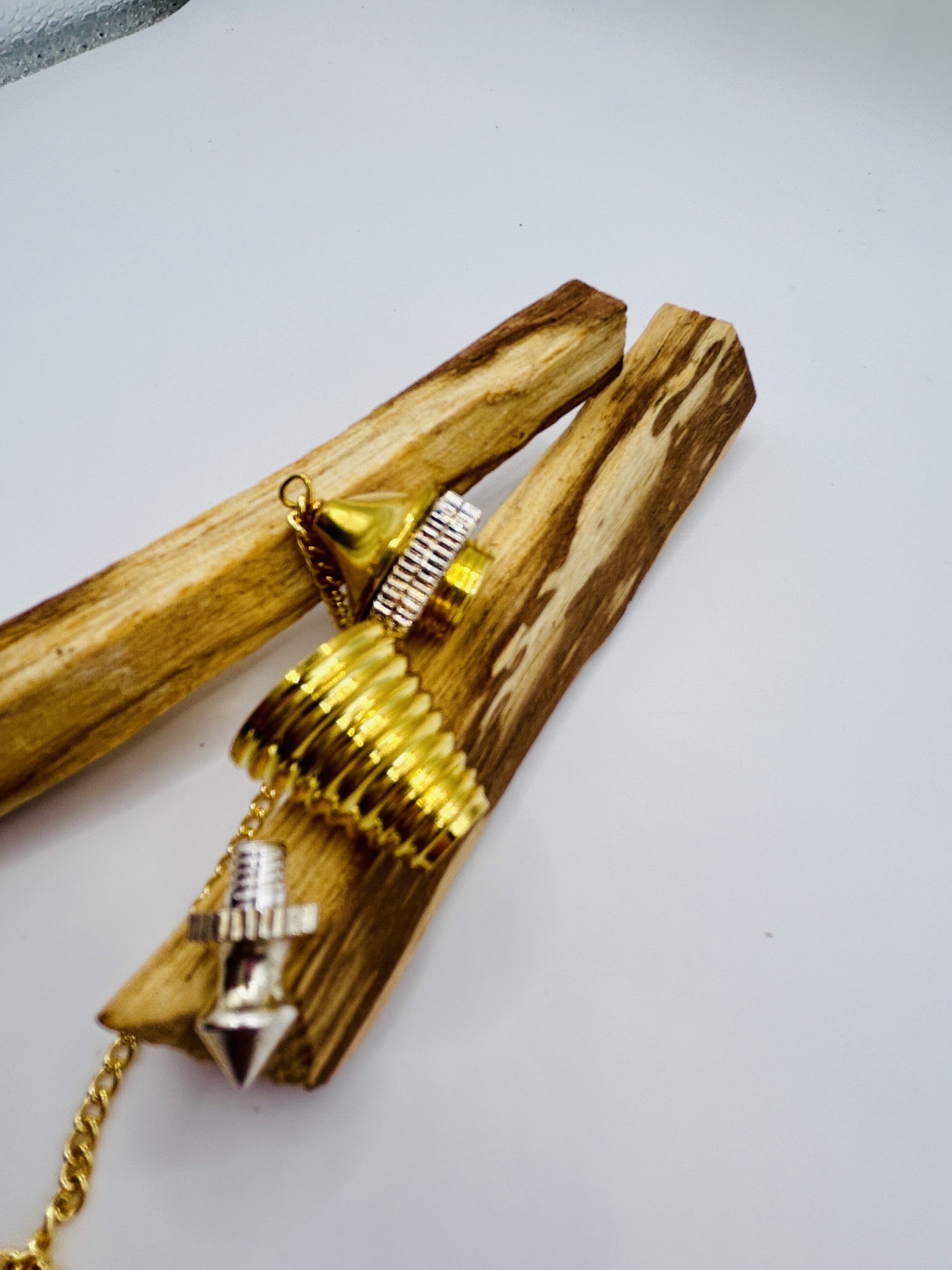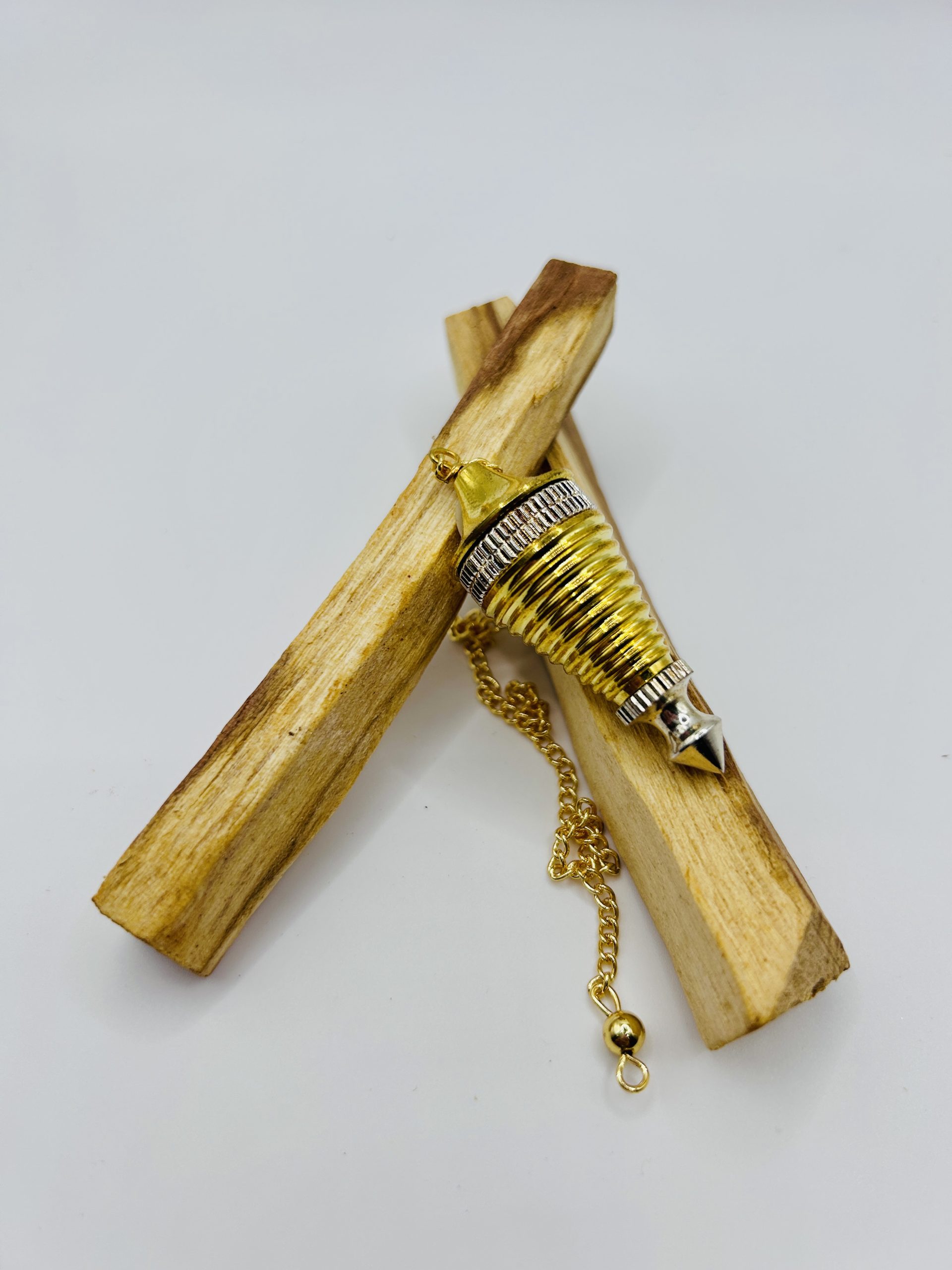 Pendule spiralé doré dévissable, amplificateur d’énergie, idéal pour la radiesthésie à témoin et les recherches vibratoires précises.