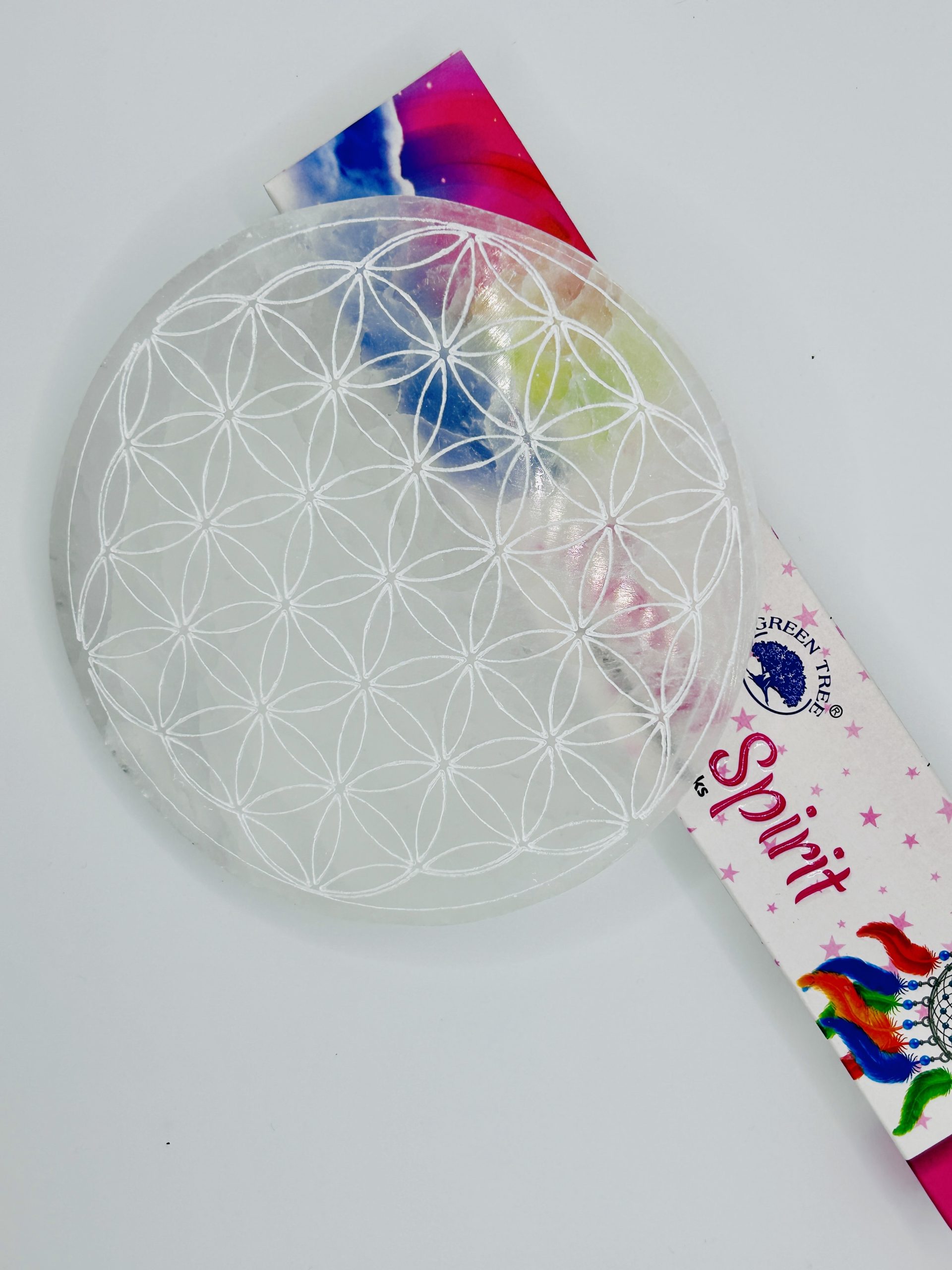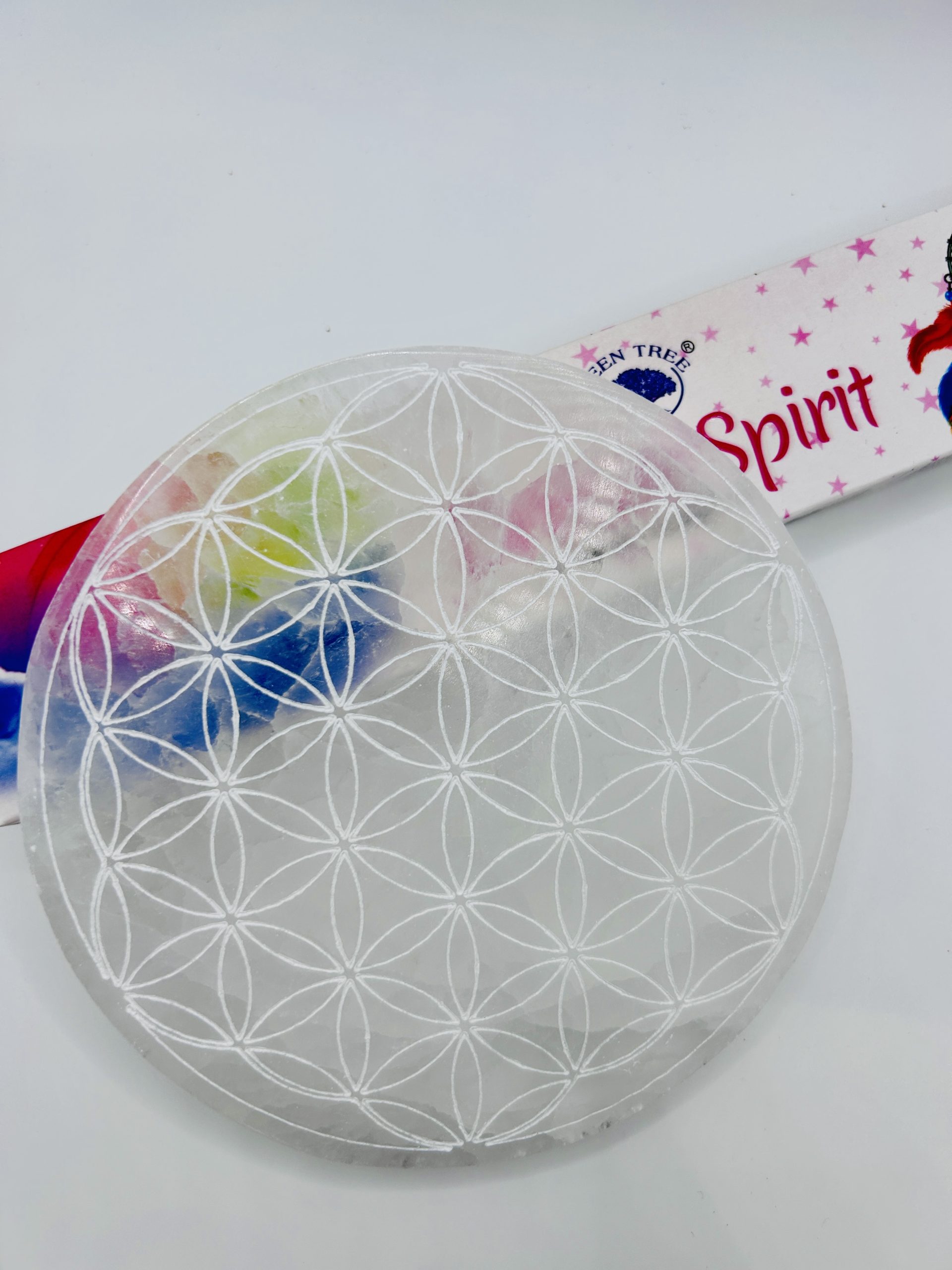 Plaque de rechargement en Sélénite blanche – Fleur de vie 2