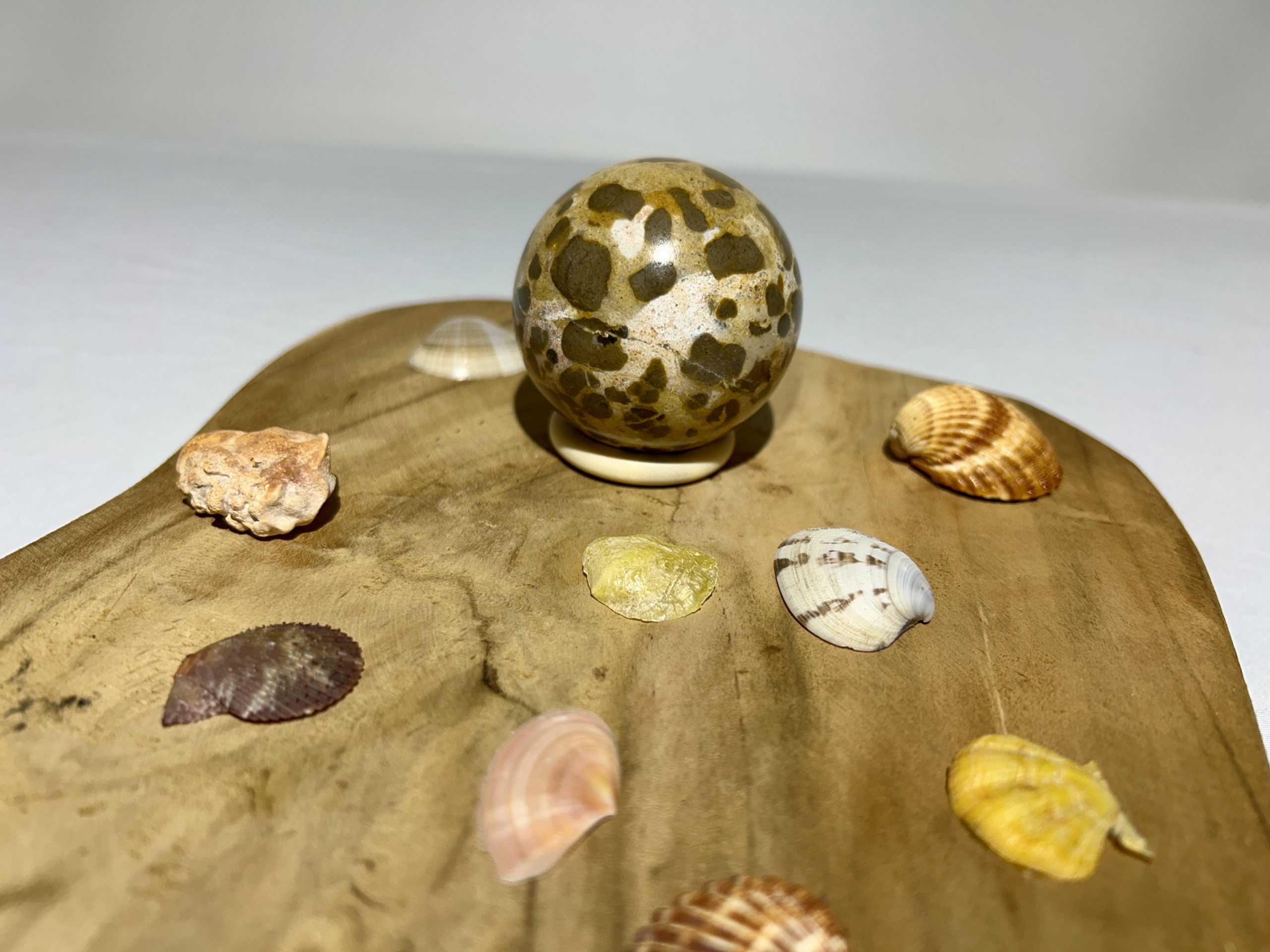 Le Jaspe Léopard est une variété de jaspe, une roche microcristalline formée par sédimentation et minéralisation au fil de millions d’années. Ses motifs uniques, ressemblant aux taches d’un léopard, sont le résultat d’inclusions de fer, manganèse et autres minéraux. Chaque pierre est ainsi unique et sa structure compacte et solide en fait une pierre durable et idéale pour le travail énergétique ou la lithothérapie.